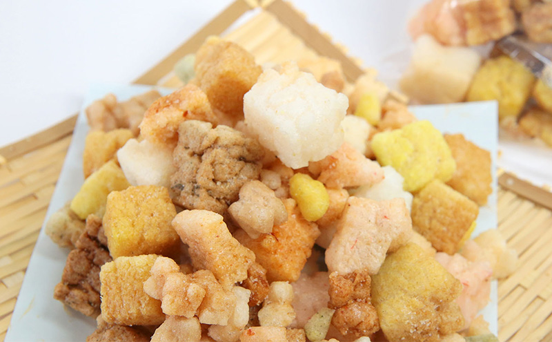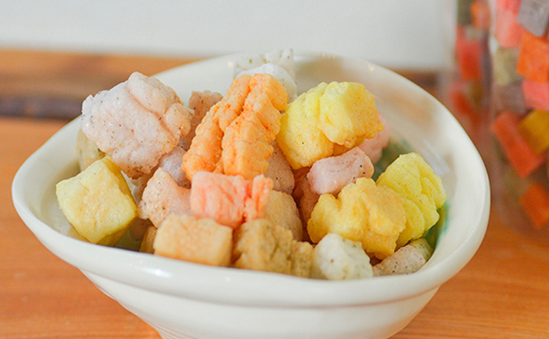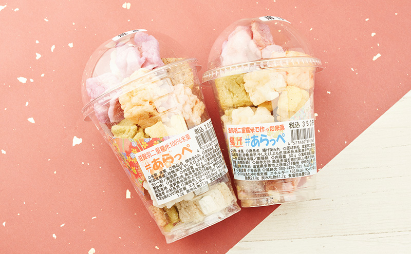 もちを小さく切り、揚げた軽い食感で、カラフルな色味とカップに入れられた形状でドライブやお土産としてお持ち帰りいただくのにもおススメです。