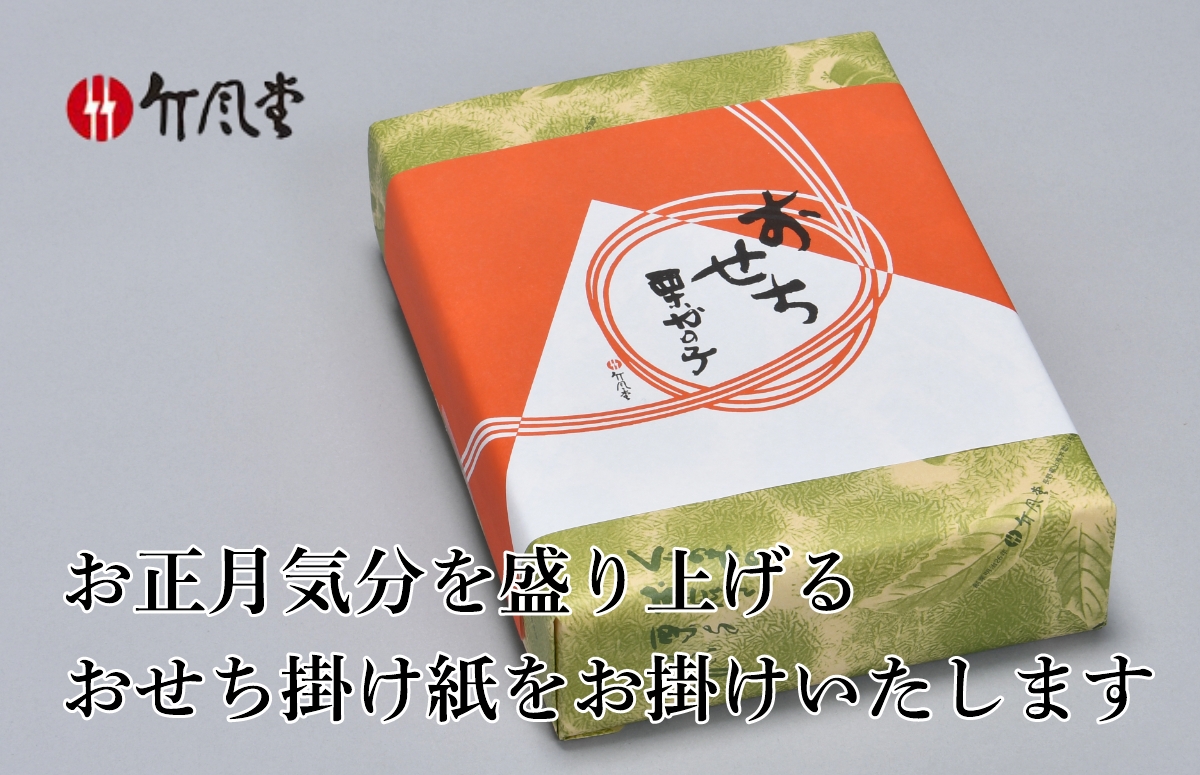 お正月気分を盛り上げるおせち掛け紙をお掛けいたします。