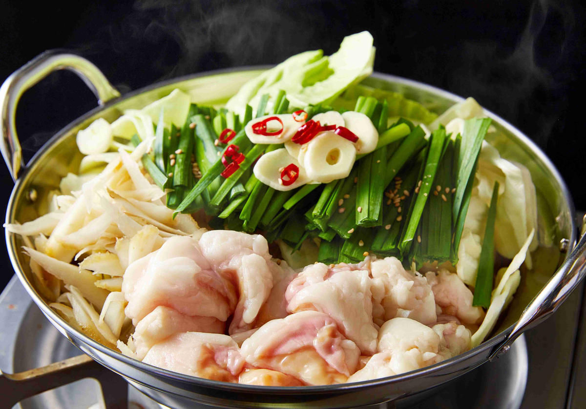 近江牛小腸300g、ホルモン屋が作った本気のもつ鍋スープ塩味1回分 150g、〆の麵、美味しいもつ鍋の作り方