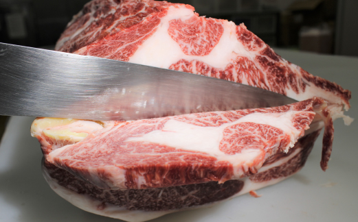 生産者が愛情込めて育てた牛はストレスが少なく、「リブロース」は細かく脂が入った霜降り肉で、熱を加えると肉汁が溶け出し、ジューシーでとろけるような食感に。