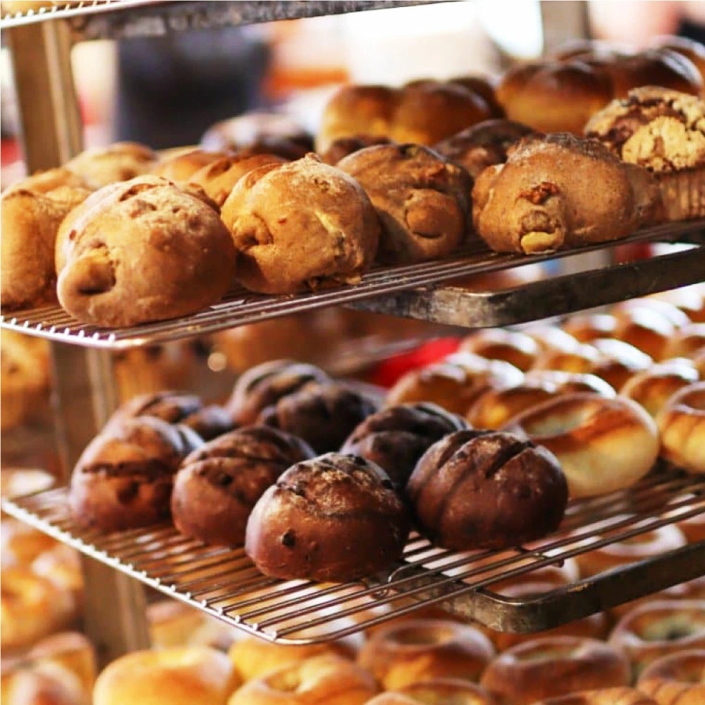 自家製酵母と薪窯の遠赤外線効果で、外はカリッと香ばしく、中は水分を閉じ込めたもっちり食感に焼き上げられています。