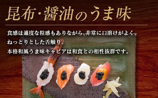キャビアを昆布、醤油、岩塩で味付けして味わい深い和風風味に仕上げました!!