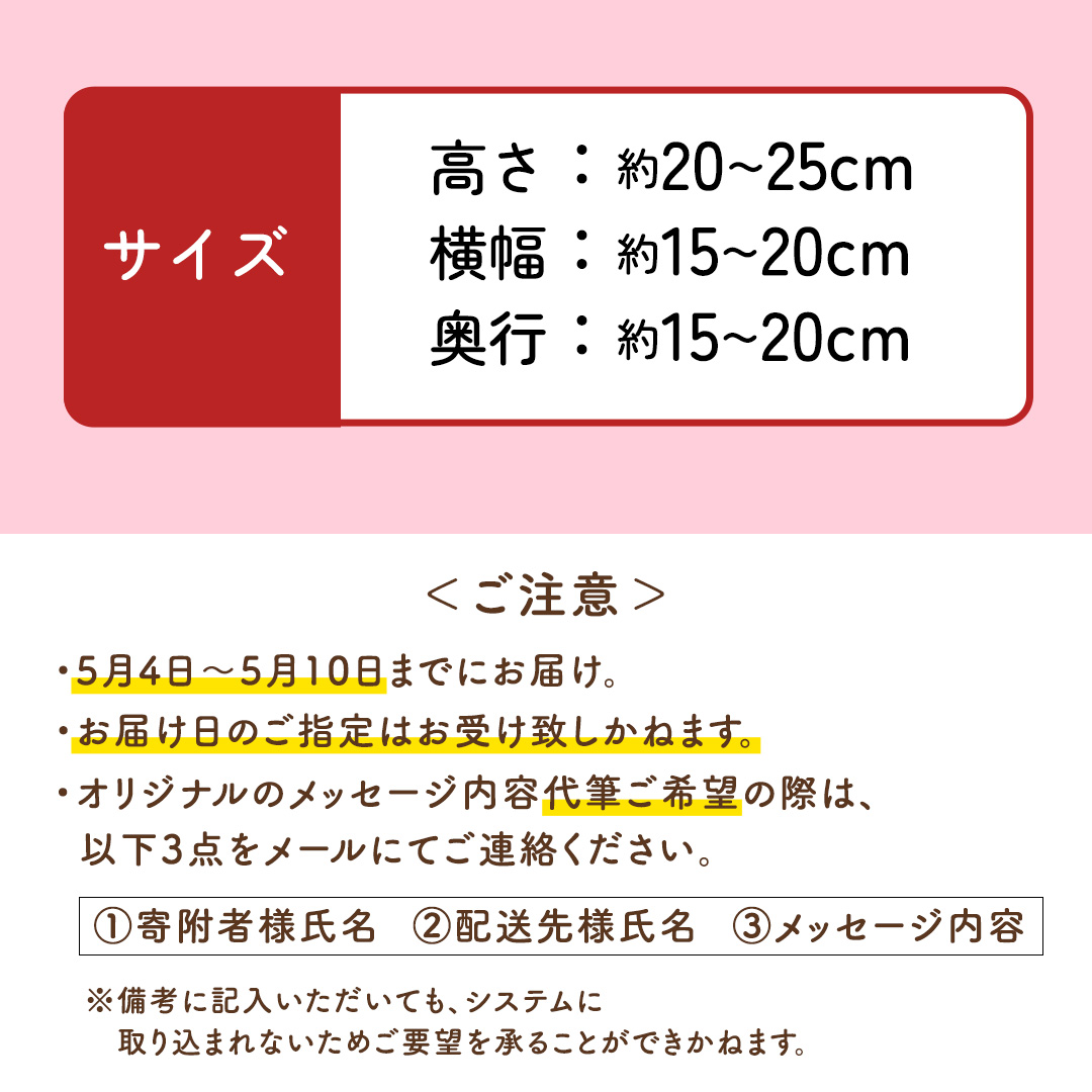 5月4日~5月10日に配送いたします。お届け日のご指定はお受け致しかねます。