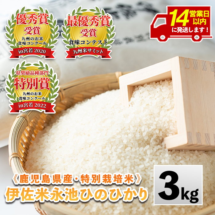 食味コンテストの九州米サミットで最優秀賞を2回受賞した、伊佐の中でも極良食味のお米が出来る「永池」で育ったお米です。