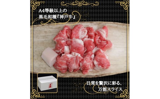 厳選された血統の黒毛和種『神戸牛』の肩バラを使用し、日常で使いやすい切り落としスライスにしました。