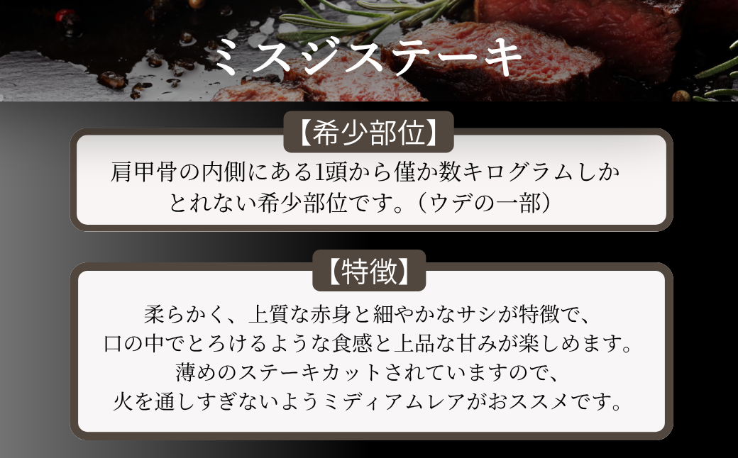 肩甲骨の内側にある1頭から僅か数キログラムしかとれない希少部位です。(ウデの一部)