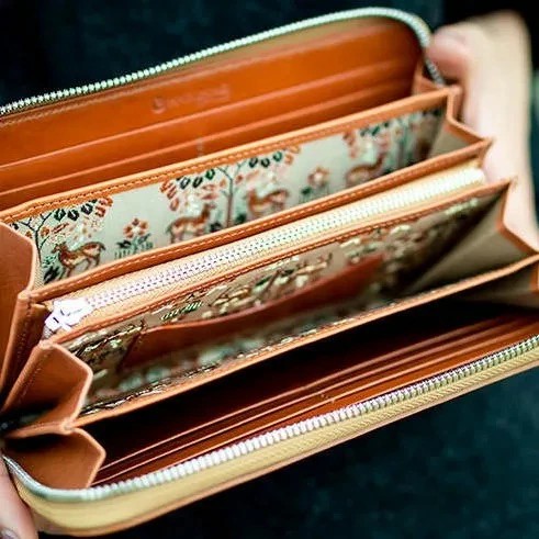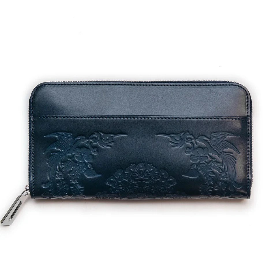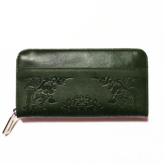 古都奈良の歴史、品格、情緒を思わせる文様が、上質なレザーに美しく刻まれた、HARUHINOだけの希少性の高いヌメ革財布です。