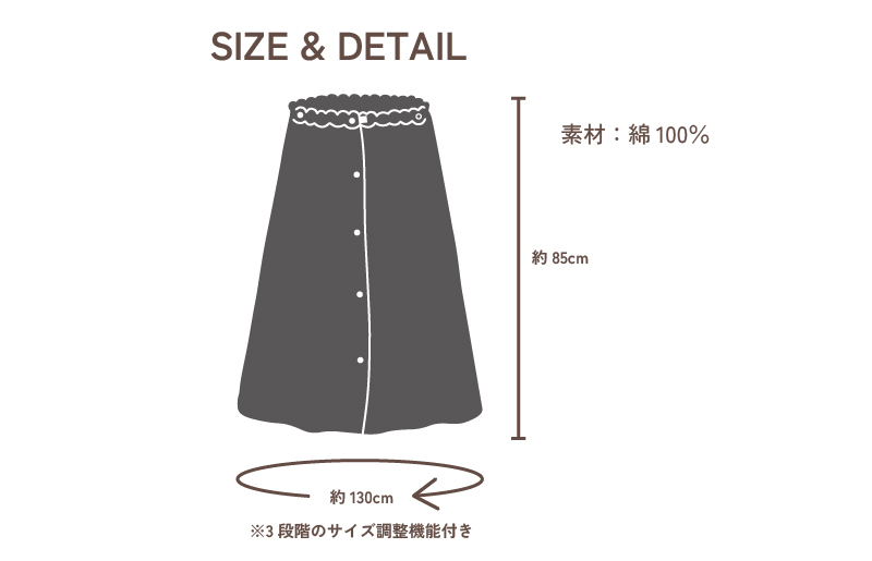 サイズ調整は3段階で 背面は伸縮性のあるゴムギャザーを使用しており、サイズ調節可能なのでどんな体系の方でも◎
