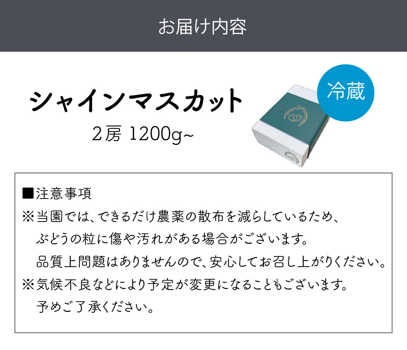 シャインマスカットでも600g以上の特選シャインマスカット2房を厳選し、お届けいたします。