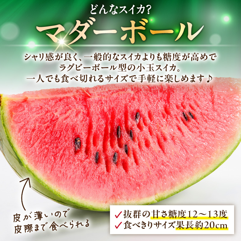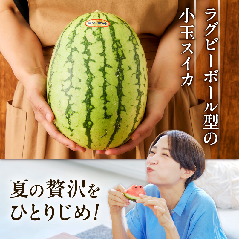 ラグビーボール型で独り占めサイズのご褒美スイカ!ジューシーで薄皮高糖度!