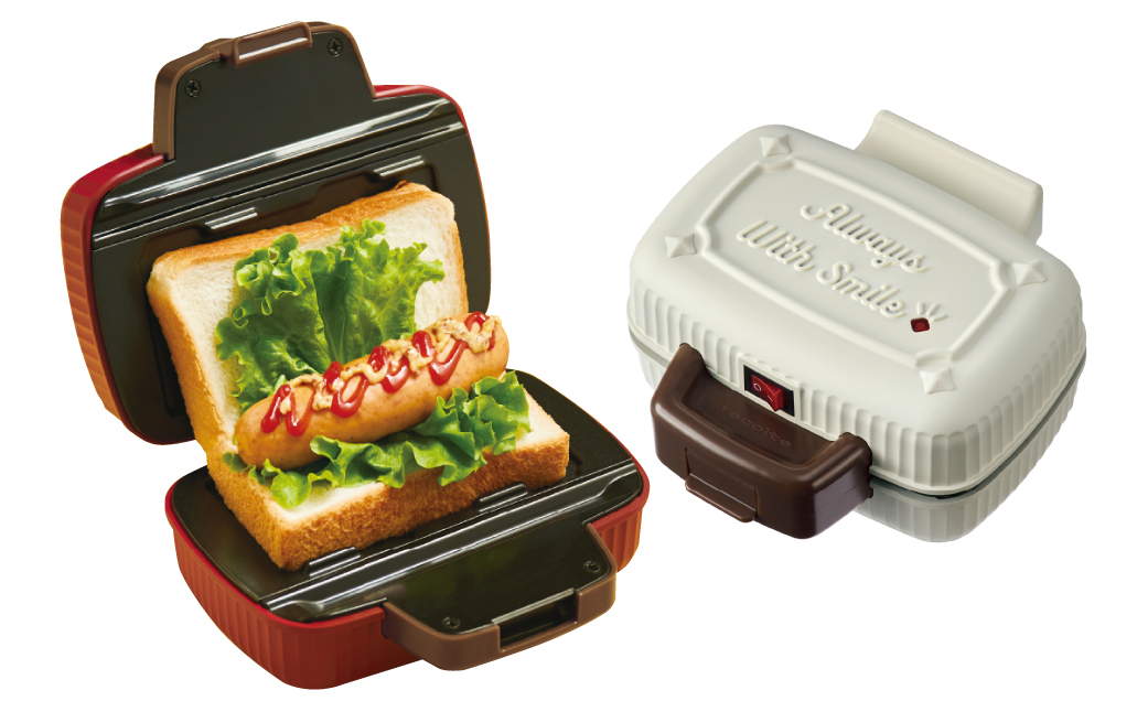 ピクニックバッグを思わせるかわいいフォルムとレトロなムードのカラーでキッチンを彩る、おしゃれなホットサンドメーカーです。