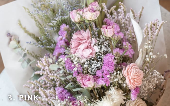 オープン以来、20、000件のドライフラワーアレンジの実績があるドライフラワー専門のフローリストが心を込めて制作し、
