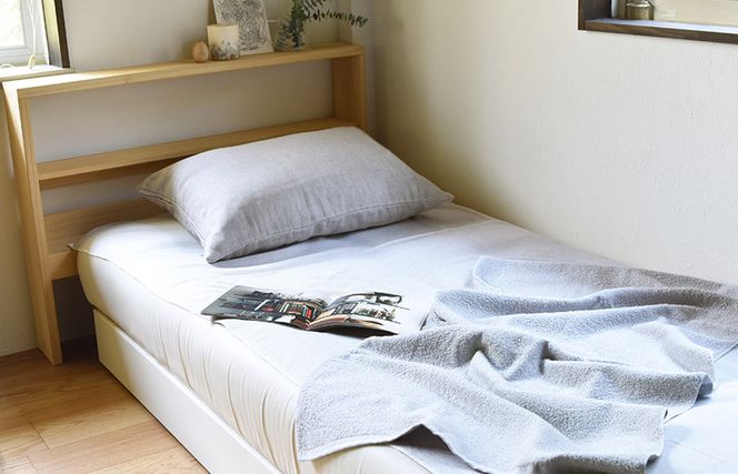 スリム幅で上下をマットレスの側面に入れ込むだけの着脱ワンタッチな進化系フラットシーツです。取り替える億劫さが軽減されるので洗濯のモチベーションもアップ!通気性のいい織り方で端までカラッと乾きます。さらりと気持ちいい平織り面と、寝汗をしっかり吸水するパイル面のリバーシブル仕様。肌にも環境にもやさしい有機精錬仕上げでシーツそのものの風合いも長持ちします。朝の目覚めにやわらかな光が差し込む情景をイメージした美しいグラデーションカラーも魅力です。