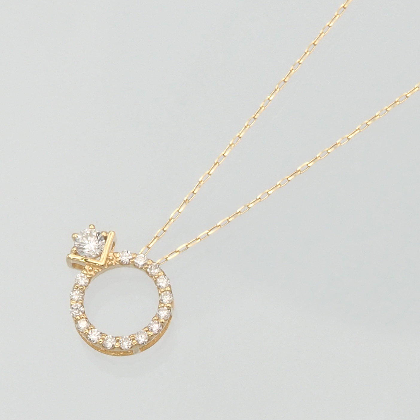 【キーワード】K18 18金 ジュエリー ギフト プレゼント レディース 可愛らしい おしゃれ 記念日 贈り物 指輪型 リングモチーフ ダイヤモンド ダイア ネックレス ダイヤネックレス ダイヤモンドネックレス