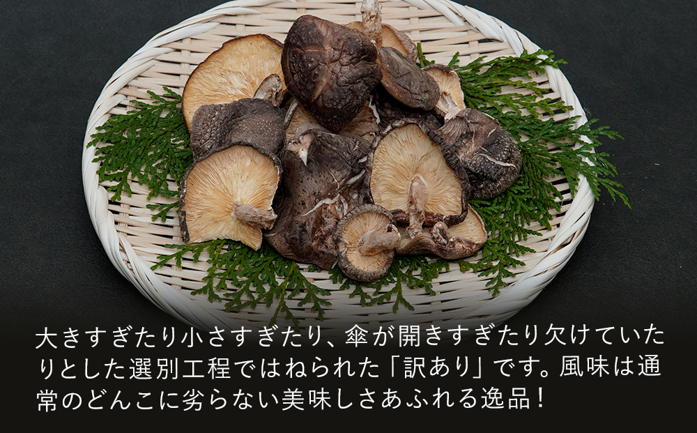 そんな大分県産椎茸の中で、大きすぎたり小さすぎたり、傘が開きすぎたり欠けていたりと贈答向け椎茸の選別工程ではねられた「訳あり」の椎茸です。