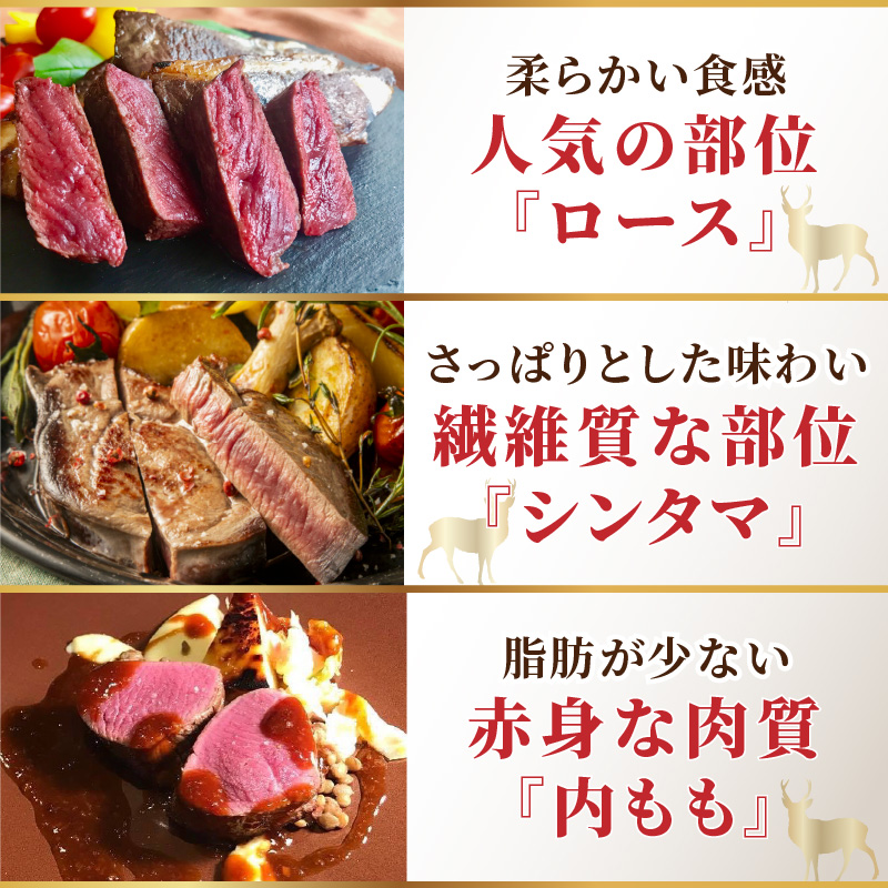 シカ肉の中でも、きめ細やかなで繊維質、低脂肪でさっぱりとした味わい。