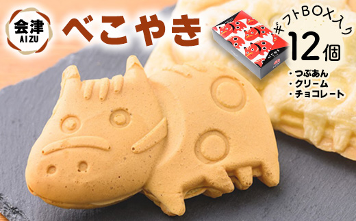 べこやき 12個(つぶあん×4・クリーム×4・チョコ×4)