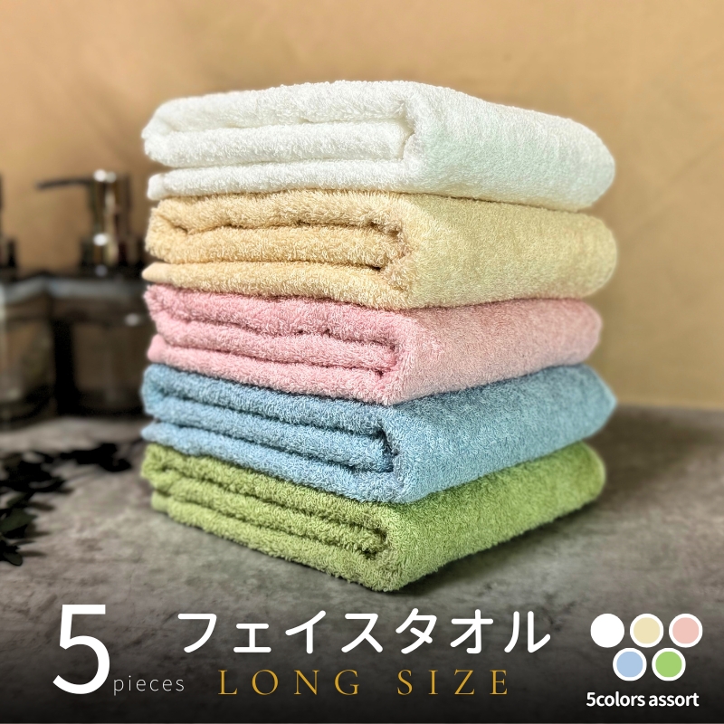 フェイスタオル:5枚(ペールトーン4色とオフホワイトのアソート)