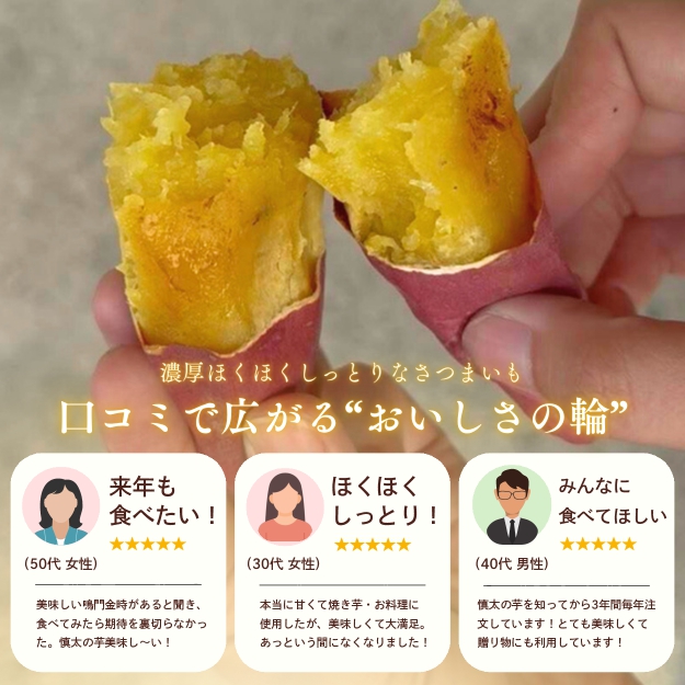 ほくほくとねっとりを兼ね備えたさつまいもですので、焼き芋や天ぷらなど様々な食べ方でお楽しみいただけます。