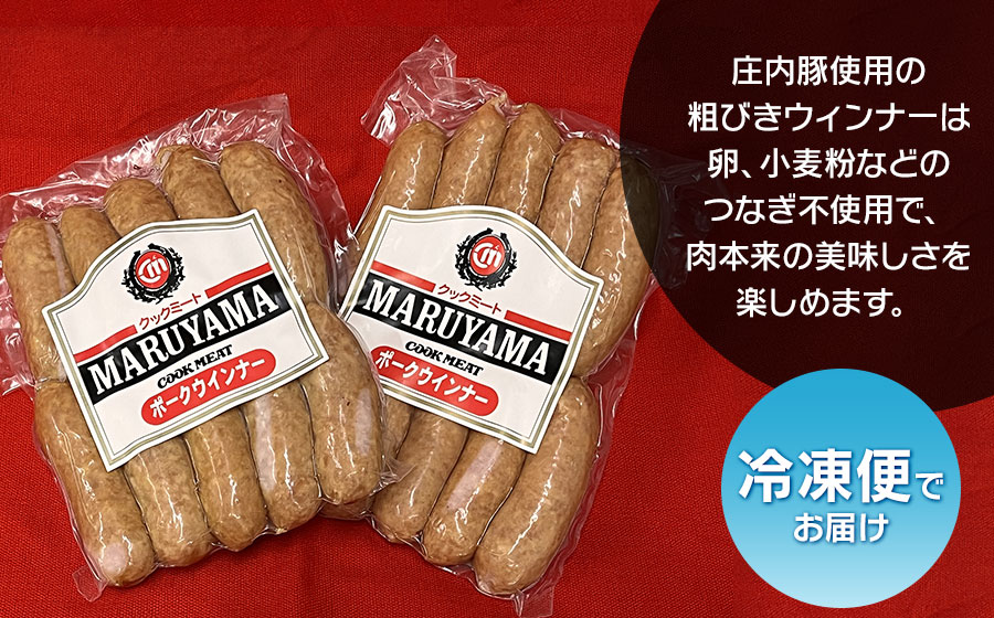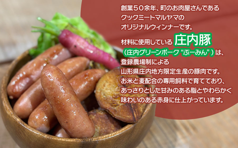 その庄内豚使用の粗びきウィンナーは、卵、小麦粉などのつなぎ不使用で、肉本来の美味しさを楽しめます。