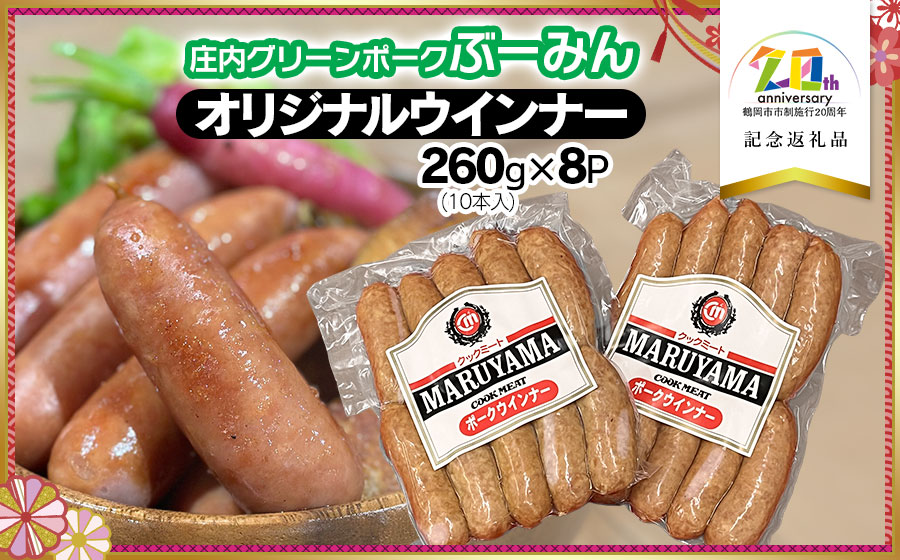 豚 豚肉 庄内豚 国産豚 庄内グリーンポーク ぶーみん オリジナルウィンナー 粗びきウィンナー つなぎ不使用 1パック 260g 10本入 8P セット冷凍 バーベキュー 東北 山形 鶴岡 庄内