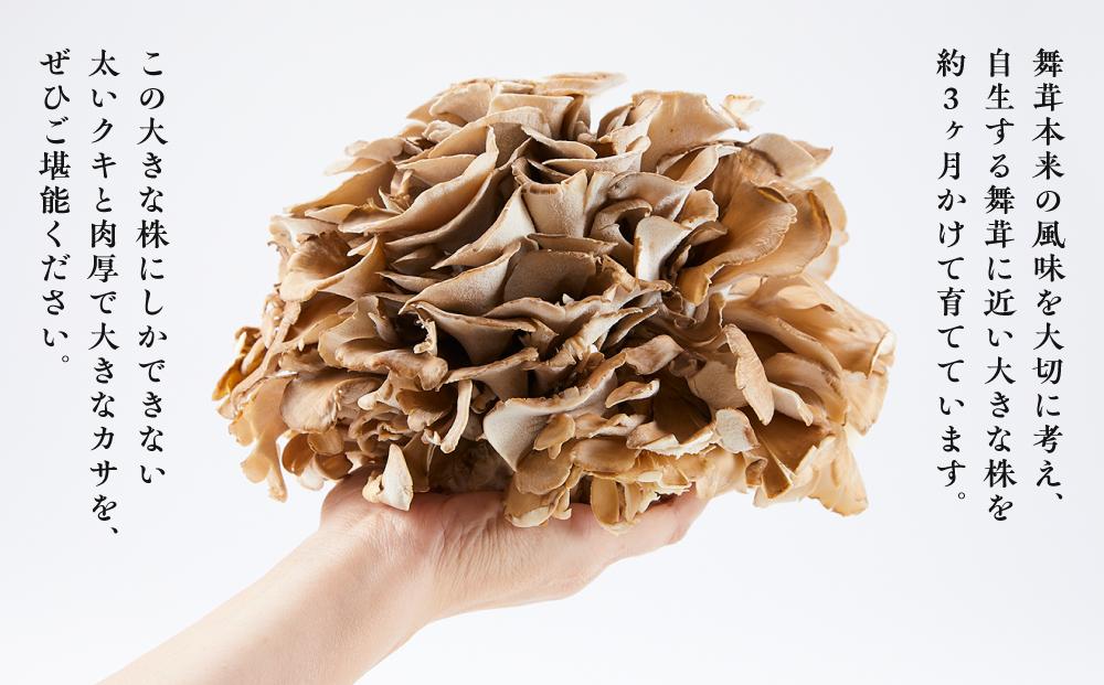 ◆これが雪国史上、最高傑作。長期熟成と大株仕立てが生み出す圧倒的なシャキシャキ感と旨味はまさに極上。雪国まいたけがこだわり抜いて育てた最高品質のまいたけを、贅沢に2株産地直送でお届けいたします。