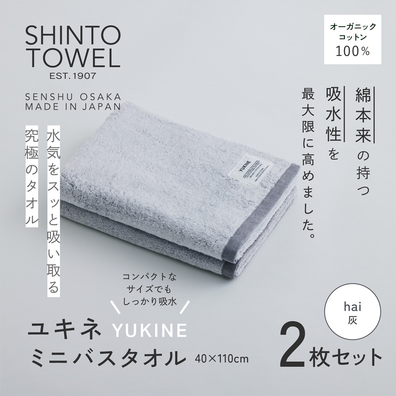 フェイスタオルとバスタオルの中間の大きさの「ミニバスタオル」。YUKINEの高い吸水性によって、コンパクトでありながら、お風呂上がりの水気をしっかりと吸い取ってくれます。