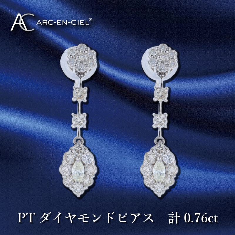 プラチナ ダイヤモンド ピアス/ダイヤ計 0.76ct/宝石鑑別団体協議会(A.G.L)会員 鑑別機関の鑑別書付き