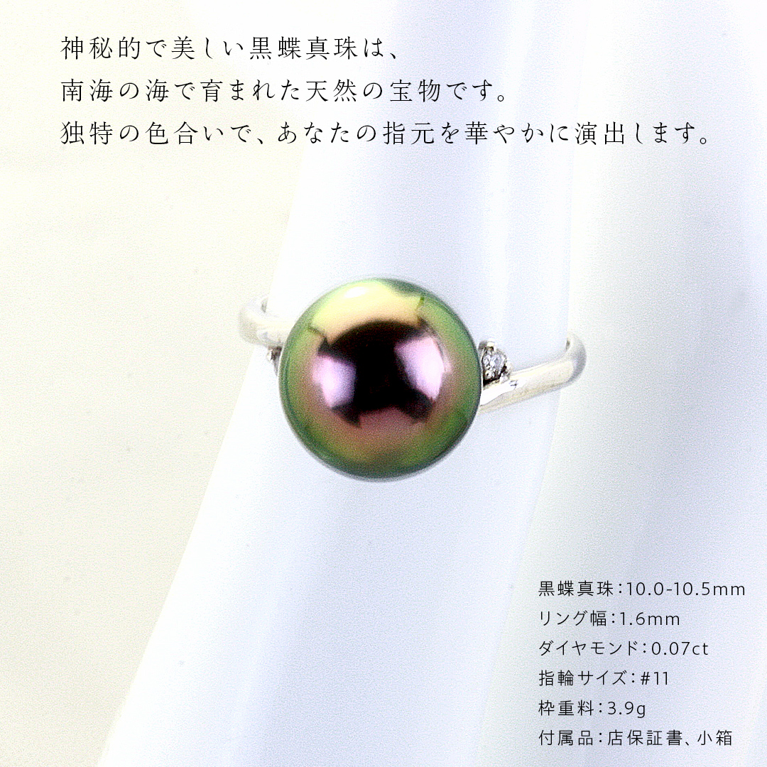南洋の海からの贈り物ともいえる、この特別な黒蝶真珠リングをぜひお楽しみください。