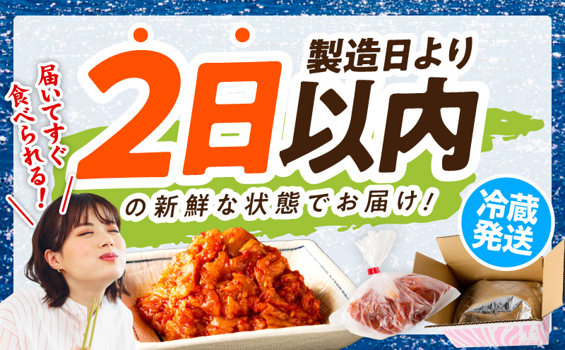 昔ながらの製造方法で高級唐辛子と上質魚醤油・北海道産桜エビをベースに、韓国産ニンニク・高知県産ショウガを100%使用した手作り特性キムチです。
