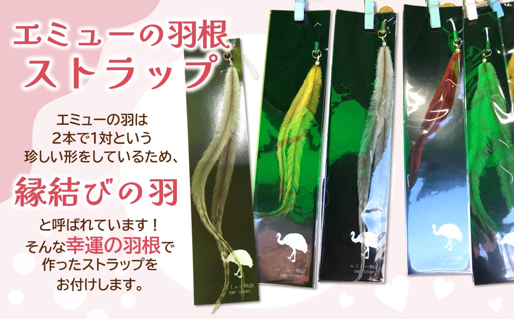 エミューの羽は2本で1対という珍しい形をしているため、縁結びの羽と呼ばれています!