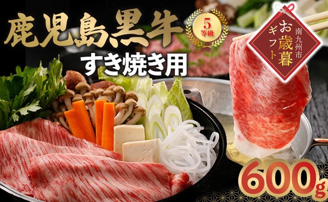 5等級の「鹿児島黒牛」の2種類の部位のすきやき用スライス600gセットです。