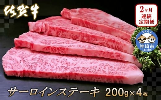 返礼品はステーキの王道とされるサーロインの4枚セットで、月1回ずつ、2カ月連続(計2回)でのお届けとなります。