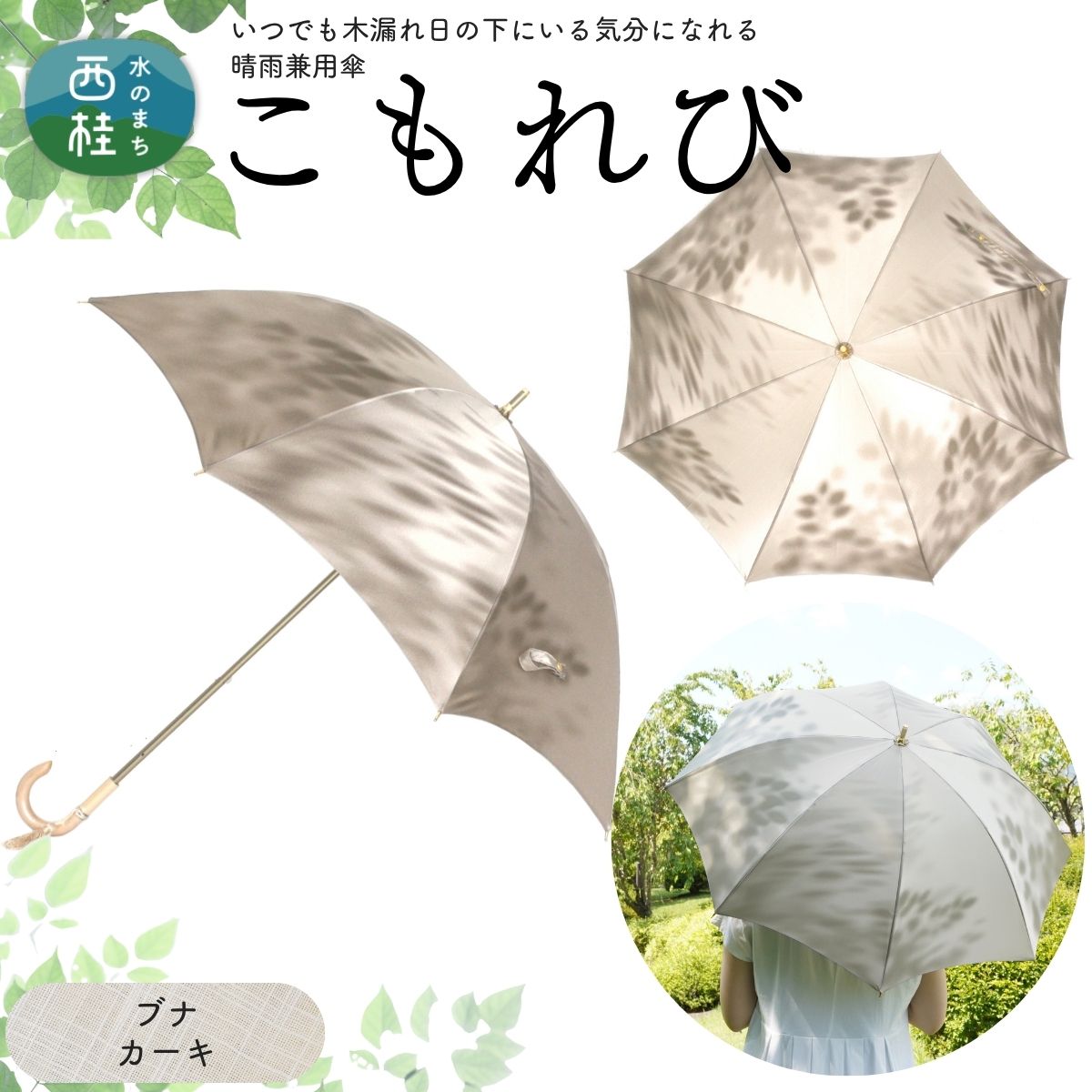 高級織物傘【婦人長傘】 こもれび 晴雨兼用傘 ブナ カーキ 傘 レディース 槇田ブランド 葉 リーフ ナチュラル / 雨具 雨傘 日傘 軽量 親骨50cm UVカット 遮光 8本骨 手開き UV加工 送料無料 山梨県 日本製 槇田商店【n0654-02_mak】-[n0654-02_mak]