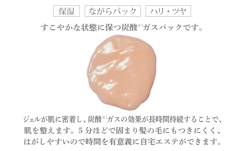 独自製法により、ジェルが肌に密着し、炭酸1リガスの効果が長時間持続することで、肌を整えます。