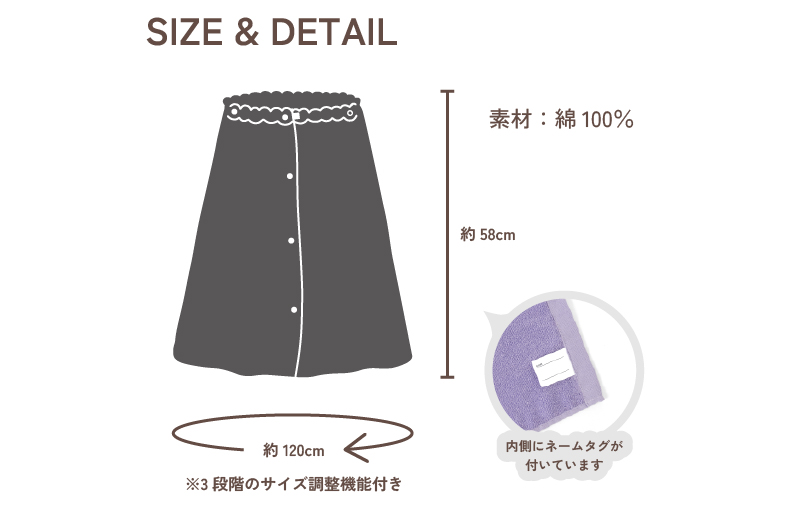 子供用では珍しい落ち着いたくすみカラーのシンプルなラップタオル。 派手なカラーやキャラクターはちょっと・・・というお子様にぜひ。