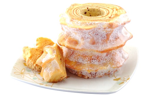 かつて陸前高田の高田松原には2キロにわたる海岸線に約7万本の松がありました。震災で流されてしまった松原に、たった1本だけ残った「奇跡の一本松」。その奇跡の一本松をイメージして「夢の樹バウム」は作られました。松の幹のようなでこぼこや、年輪のような切り口もまるで本物のようです。バウムクーヘンはドイツ語で“木のケーキ”と言いますが、まさに陸前高田版の木のケーキと言えるのではないでしょうか。