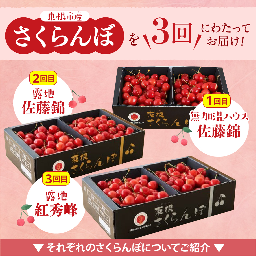 さくらんぼを3回にわたってお届け!無加温ハウス栽培「佐藤錦」、露地栽培「佐藤錦」、露地栽培「紅秀峰」を味わってみませんか。