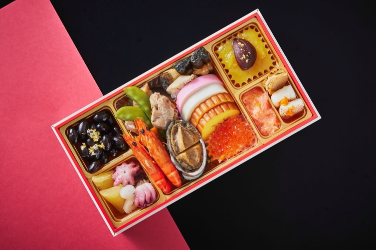 巳の重は、お正月に相応しい華やかなお料理を繊細な手仕事で丁寧に盛り込んだ和風おせちで新年の祝杯に。