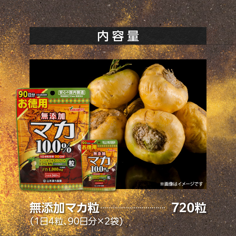 無添加マカ粒・・・360粒×2袋 (1日4粒、90日分×2袋)