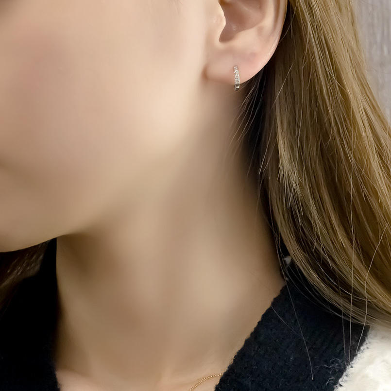 ダイヤモンドが耳元で輝き上品さとセンスの良さが際立つ片耳フープピアス