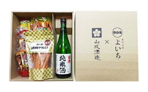 現在では珍しい「和釜」から発生する乾燥蒸気で蒸し上げた酒米は味の秘訣となっています。酒蔵を支えるのは杜氏の渡邊良夫さん。実は酒蔵の隣で菓子工房『よいち』を営む菓子職人でもあります。今回は渡邊杜氏がお薦めする「蘭の誉 純米酒」の720mLサイズと「かりんとう」のセットです。