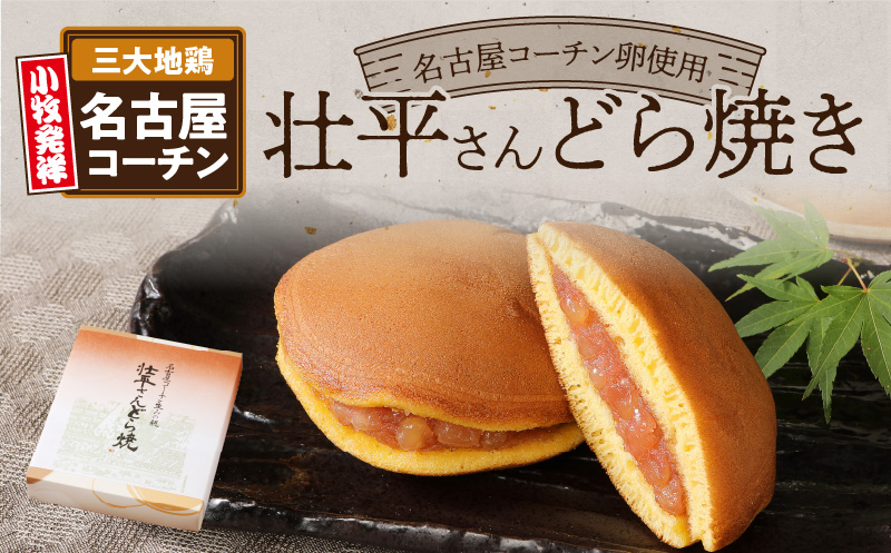 名古屋コーチンの卵を100%使用。一枚一枚丁寧に焼きあげた濃厚な生地に、備中白小豆を使った上品な粒あんをサンド。名古屋コーチン生みの親にあやかったご当地のどら焼きをご賞味ください。