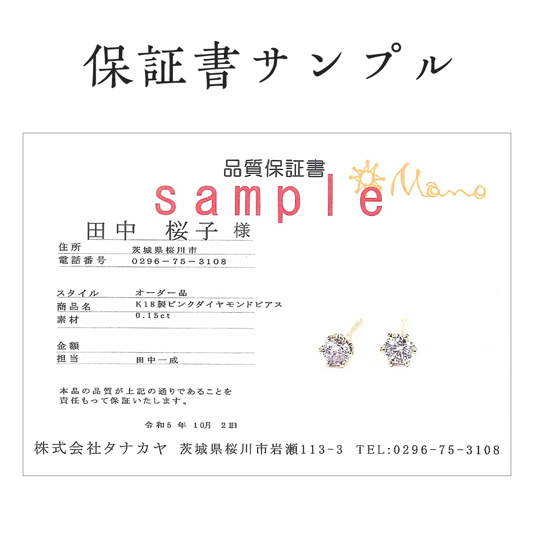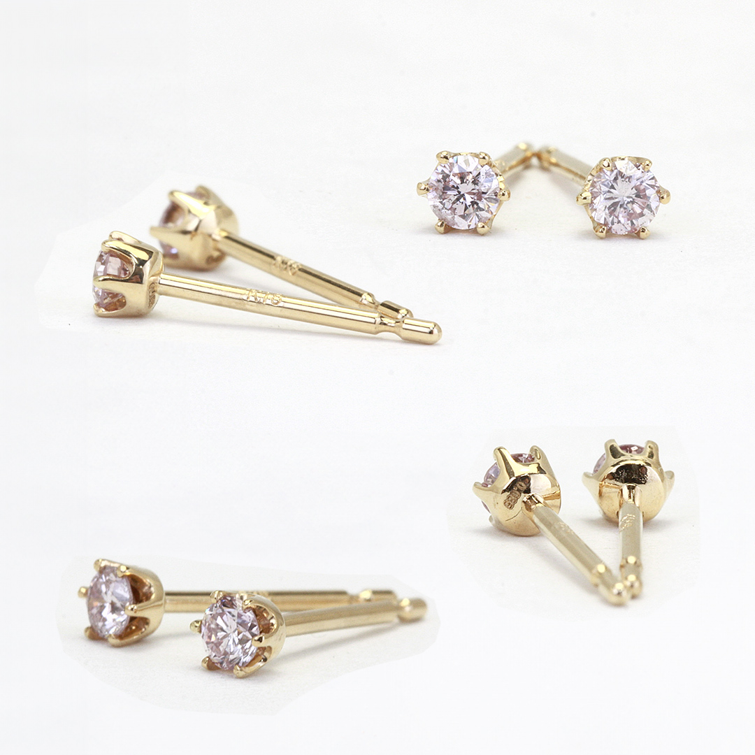 こちらのピアスは、左右それぞれピンクダイヤ1石が0.08ct~ピンクダイヤ0.07ctを2石セレクトしてトータル0.15ct前後にしています。