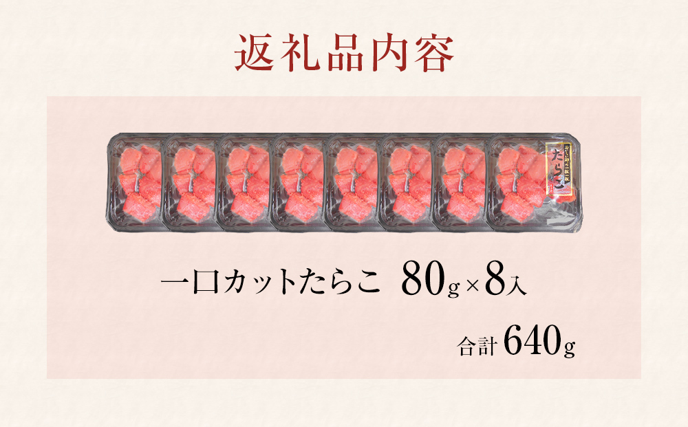 たらこが一口大にカットされており、そのままご飯のお供やおにぎり、パスタなどに手軽に使えます。