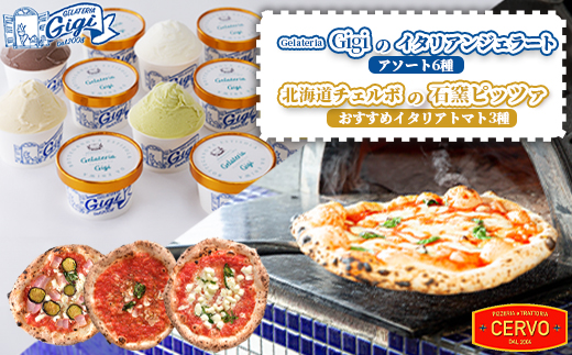 ジェラテリアGigi イタリアンジェラート アソート6種 チェルボ 石窯ピッツァ おすすめイタリアトマト3種 セット ジェラート 計6個 カップ スイーツ ピザ ピッツァ 石窯ピザ 計3枚 グルメ ふるさと納税 北海道 恵庭市 恵庭