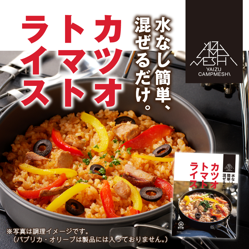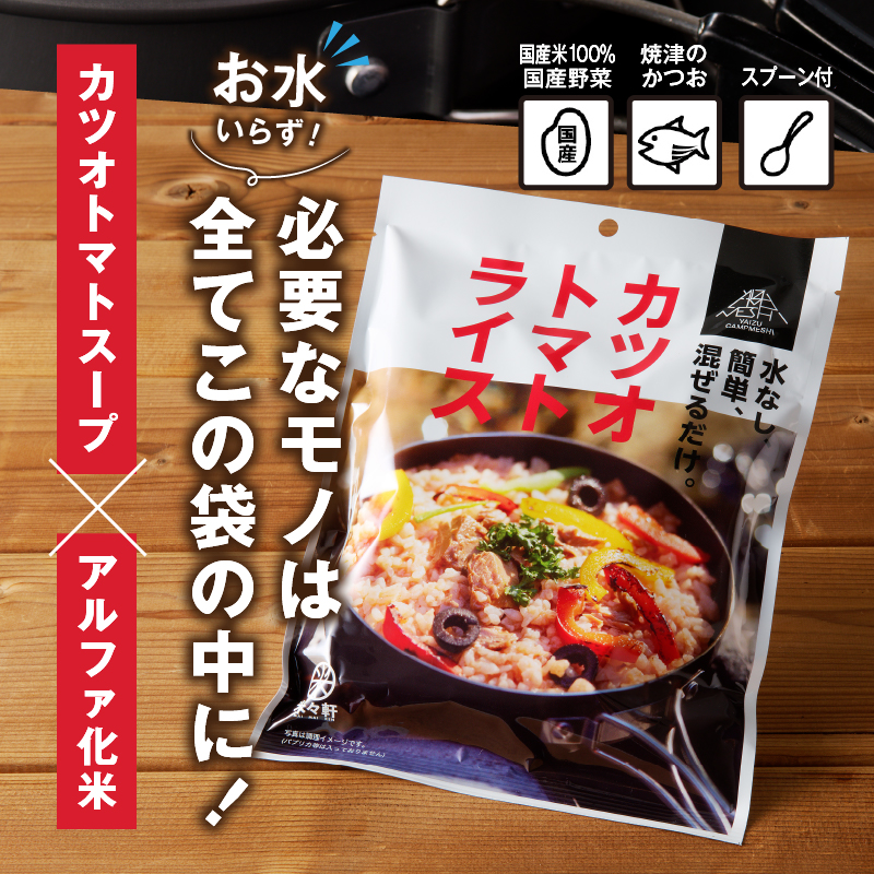 カツオトマトライス:20食(カツオトマトスープ 180g、アルファ化米 80g)、スプーン付