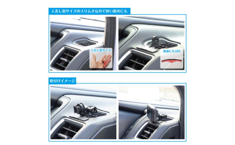 ・両面テープを使用して ダッシュボードに取付け(曲面にも対応)