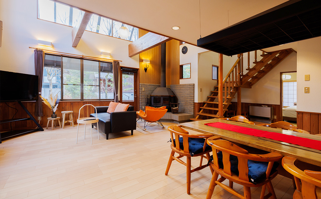 ご宿泊は、温泉付き分譲地「蔵王山水苑」を中心として分散型宿泊施設を展開している「ガイアリゾート」の天然温泉付き貸別荘「山水苑「道」」にて。蔵王町の新鮮な食材をふんだんにつかったお食事をつかったお食事をご用意しております。