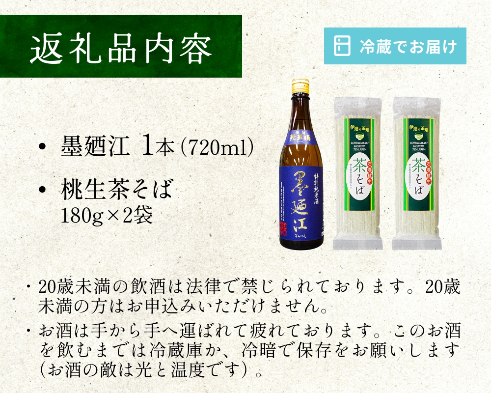 桃生茶そば●桃生産のお茶を使用した乾麺。喉ごしがゆく後味にお茶豊かな香りが広がります。